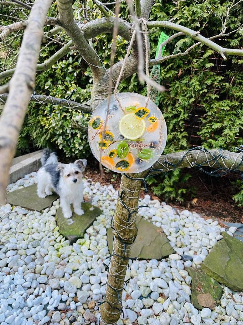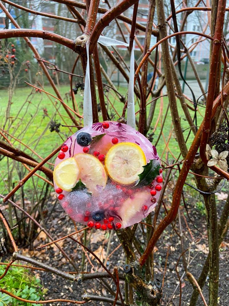 SIe nutzten die Minusgrade, um die Landschaft mit ihrer Eiskunst zu verschönern. Die Kunstwerke wurden fotografiert und den Mitschülerinnen und Mitschülern stolz präsentiert.
