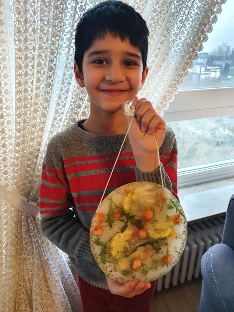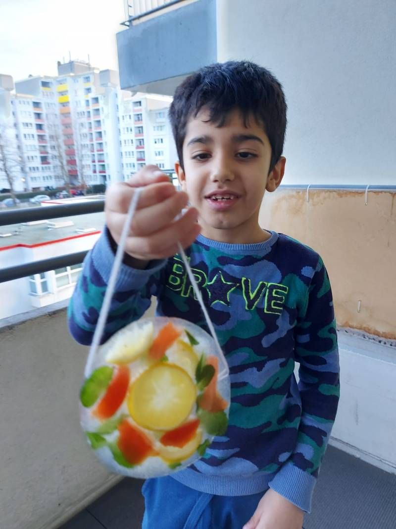 Auch wenn gemeinschaftliches Arbeiten im Moment nicht möglich war, nahmen die Kinder der Hundeklasse gerne das freiwillige Kunstangebot an und machten "Eiskunst".