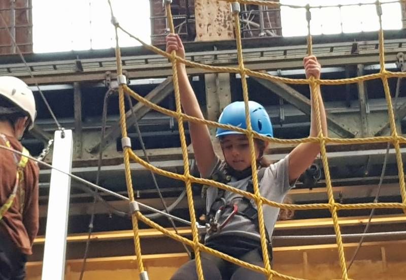 An diesem Inklusionsprojekt nahmen 20 Waldschulkinder teil. Der Stadtsportbund Bochum verfolgt mit dem Inklusionsprojekt „Hoch hinaus“ konkrete Ziele: Behinderte und Nichtbehinderte zwischen 6 und 27 Jahren sollen an Selbstbstvertrauen gewinnen, einander vertrauen und voneinander lernen, die eigenen Grenzen kennenlernen und Erfolge erleben. Die Waldschulkinder machten erste Erfahrungen in der Höhe, probierten den mobilen Hochseilgarten aus, wagten Riesensprünge auf den Trampolinen und bewältigten die Kletterwand. Für die nicht so mutigen Kinder standen weitere Spiel- und Bewegungsmöglichkeiten zur Verfügung.