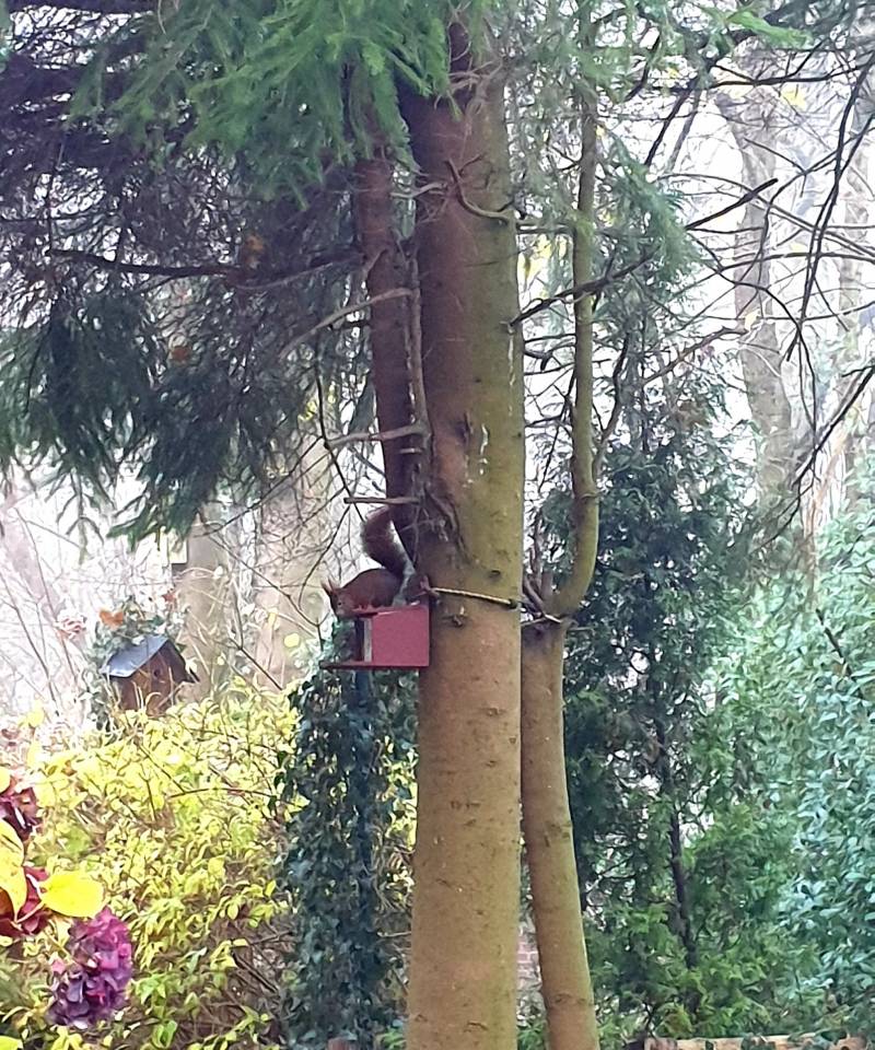 In den letzten Wochen haben die Kinder der Eichhörnchenklasse sich intensiv mit den „echten“ Eichhörnchen auseinandergesetzt. Sie haben versucht genauso weit zu springen, verschiedene Nussknacker mit den Nagezähnen der Eichhörnchen verglichen und vor allem habe sie viele Nüsse und Samen gesammelt, die Eichhörnchen gerne mögen. Damit konnten sie nun ein Futterhaus für Eichhörnchen befüllen, um ihnen durch den Winter zu helfen. Die echten Eichhörnchen lieben das Futterhaus der Eichhörnchenklasse und ließen sich sogar beim Nüsse abholen beobachten.