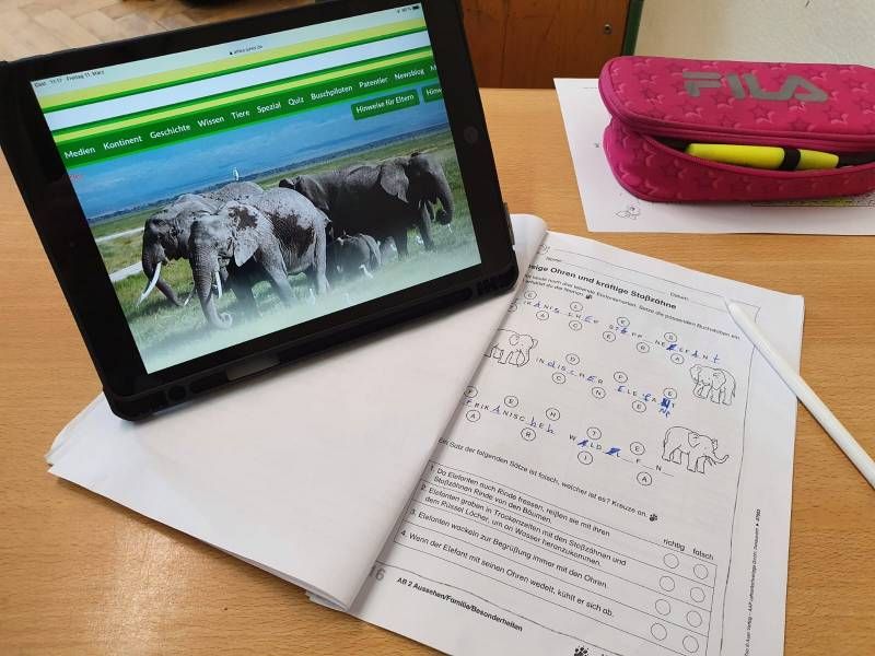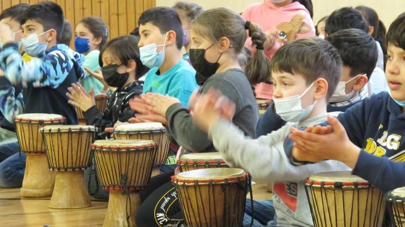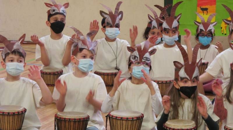 Als Gazellen, Giraffen, Affen und Elefanten schlüpften sie in verschiedene Rollen und studierten Lieder ein, die sie mit Trommeln begleiteten. Damit auch später noch getrommelt werden kann, bastelten die Kinder des vierten Jahrgangs wunderschöne Trommeln und recherchierten mit viel Freude zu "ihren" Tieren, den Elefanten und Affen, und über den Kontinent Afrika.