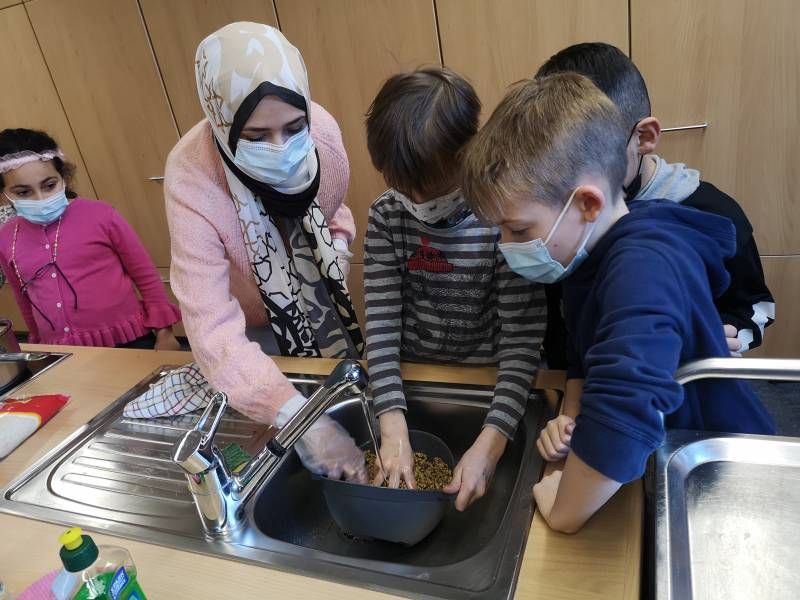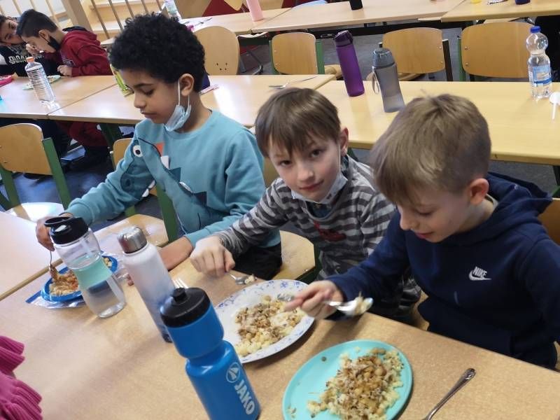 Auch in den anderen Jahrgängen wurde sich mit "Afrika" beschäftigt. Es wurden Bücher gelesen, recherchiert, gemalt und gebastelt, Im 2. Jahrgang luden Eltern mit afrikanischen Wurzeln die Klassen zum Kochen und Essen von traditionellen Speisen ihres Heimatlandes ein. Dabei waren 5 verschiedene afrikanische Länder vertreten!