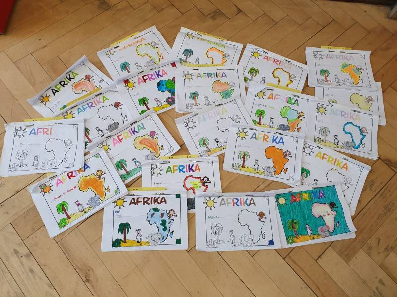 Auch in den anderen Jahrgängen wurde sich mit "Afrika" beschäftigt. Es wurden Bücher gelesen, recherchiert, gemalt und gebastelt,  Im 2. Jahrgang luden Eltern mit afrikanischen Wurzeln die Klassen zum Kochen und Essen von  traditionellen Speisen ihres Heimatlandes ein. Dabei waren 5 verschiedene afrikanische Länder vertreten!