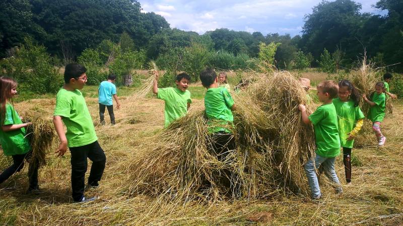 Auf einem tollen Wanderweg durch den Wald erreichten wir zunächst den Waldspielplatz mit vielen Tobemöglichkeiten. Danach kamen wir über einen Geheimgang zum Hof. Hier gab es viel zu bewundern, zu staunen, anzufassen und zu begreifen. DIe Kinder durften Knoblauch ernten, Mangold pflanzen und Heu stapeln. Dabei lernten sie einiges über Pflanzen und Anbaumethoden. So erklärte sich auch, warum einige Pflanzen mit Schafswolle bedeckt waren. Denn: "Horn und Haar düngt sieben Jahr"! Die Übrraschung war groß, als die Kinder zum wichtigsten Ort des Hofes geführt wurden und beim Komposthaufen landeten. ...