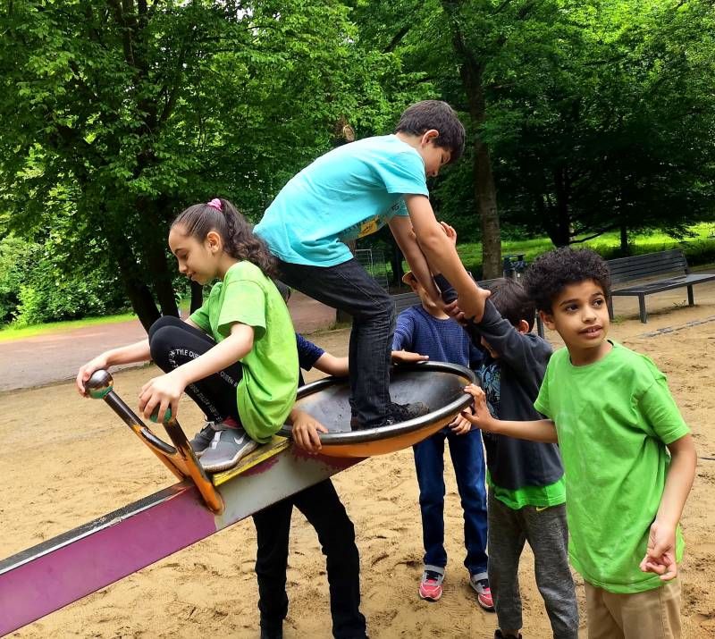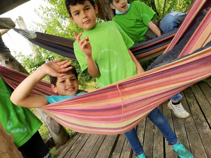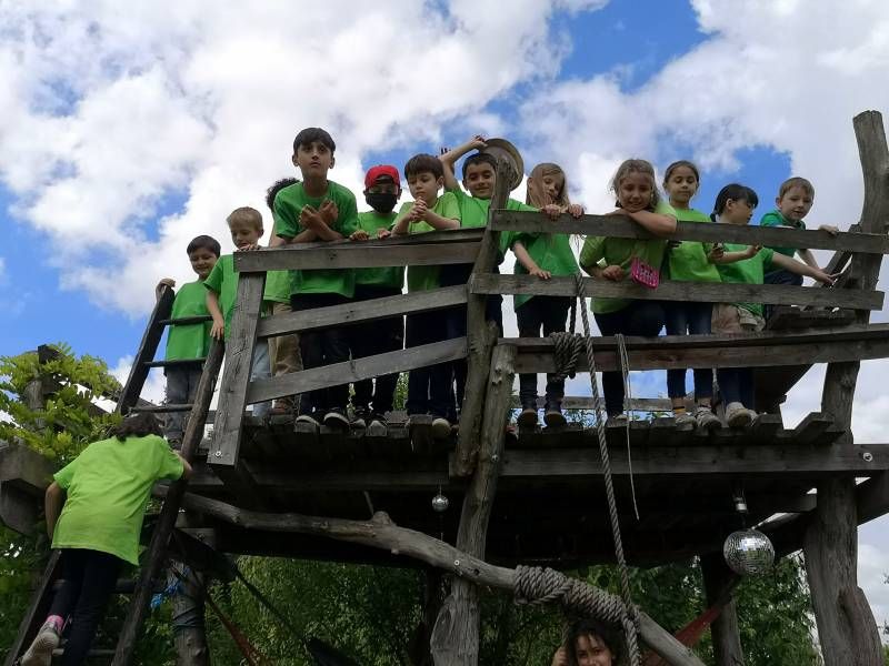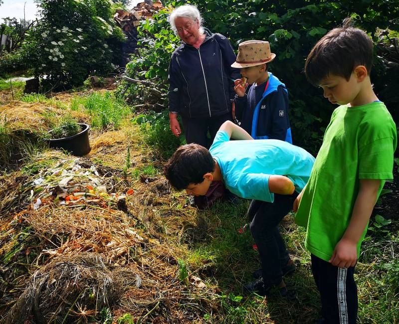 Auf einem tollen Wanderweg durch den Wald erreichten wir zunächst den Waldspielplatz mit vielen Tobemöglichkeiten. Danach kamen wir über einen Geheimgang zum Hof. Hier gab es viel zu bewundern, zu staunen, anzufassen und zu begreifen. DIe Kinder durften Knoblauch ernten,  Mangold pflanzen und Heu stapeln. Dabei lernten sie einiges über Pflanzen und Anbaumethoden. So erklärte sich auch, warum einige Pflanzen mit Schafswolle bedeckt waren. Denn: "Horn und Haar düngt sieben Jahr"! Die Übrraschung war groß, als die Kinder zum wichtigsten Ort des Hofes geführt wurden und beim Komposthaufen landeten. ...