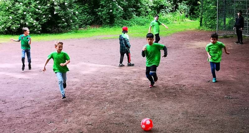 DIe Klasse konnte sich bei einem Gemeinschaftsspiel beweisen und in Heuhöhlen spielen.