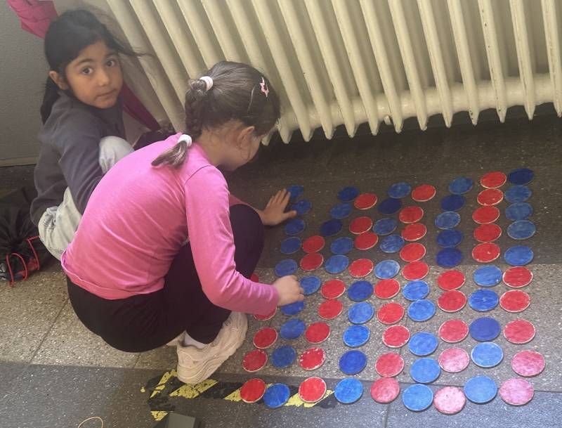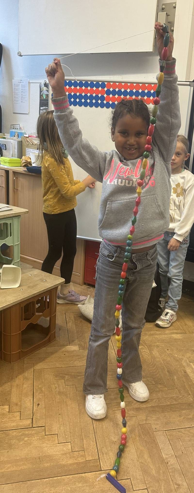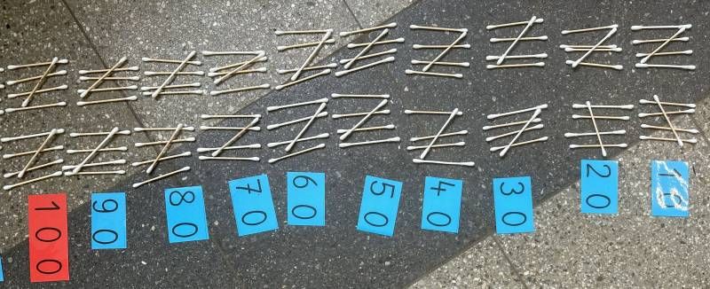Nach dieser Stärkung wurde im Mathematikunterricht mit verschiedensten Materialien bis 200 gezählt und gebündelt. Hiebei konnten die Kinder in Teams unterschiedliche Zähl-und Bündelstrategien diskutieren und erproben.