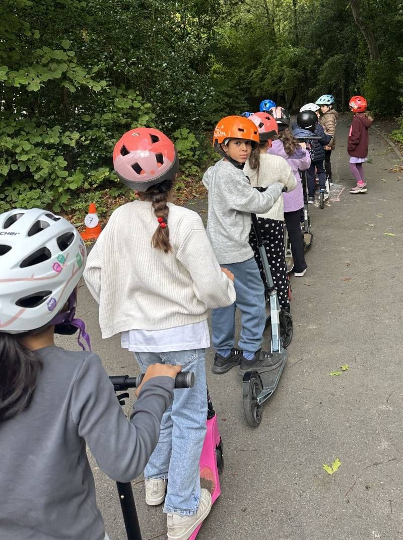 Die Kinder des 2.Jahrgangs feierten ihr 200-Tage-Fest, passend zur Sportlichen Grundschule, mit einem Rollertag. Sie rollterten auf dem Schulhof und konnten ihr Können an verschiedensten Aufgaben und Schwierigkeitsgraden beweisen. Bei der schrägen Abfahrt brauchte man Mut und musste das Bremsen gut beherrschen. Die Kinder bekamen den Parcours mit einem Lageplan erklärt und sie konnten sich mit dieser Karte orientieren. So wurden ihr Kartenverständnis und ihre räumliche Wahrnehmung geschult und sie konnten ihre Kompetenzen in der Mobilitätserziehung spielerisch erweitern.