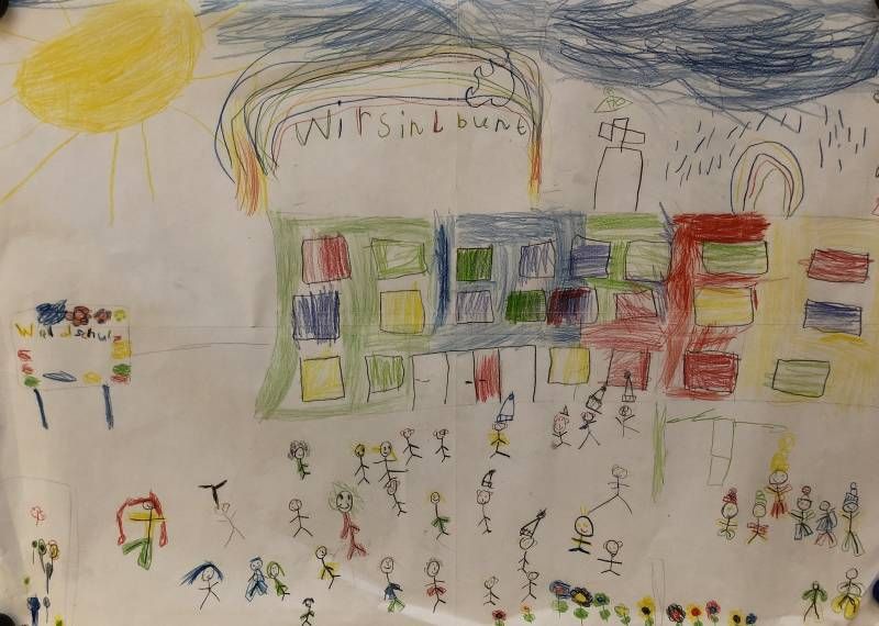 Wie die Kinder im Buch entscheiden sich auch die Schülerinnen und Schüler der Waldschule für eine bunte bzw. multikulturelle Gesellschaft.